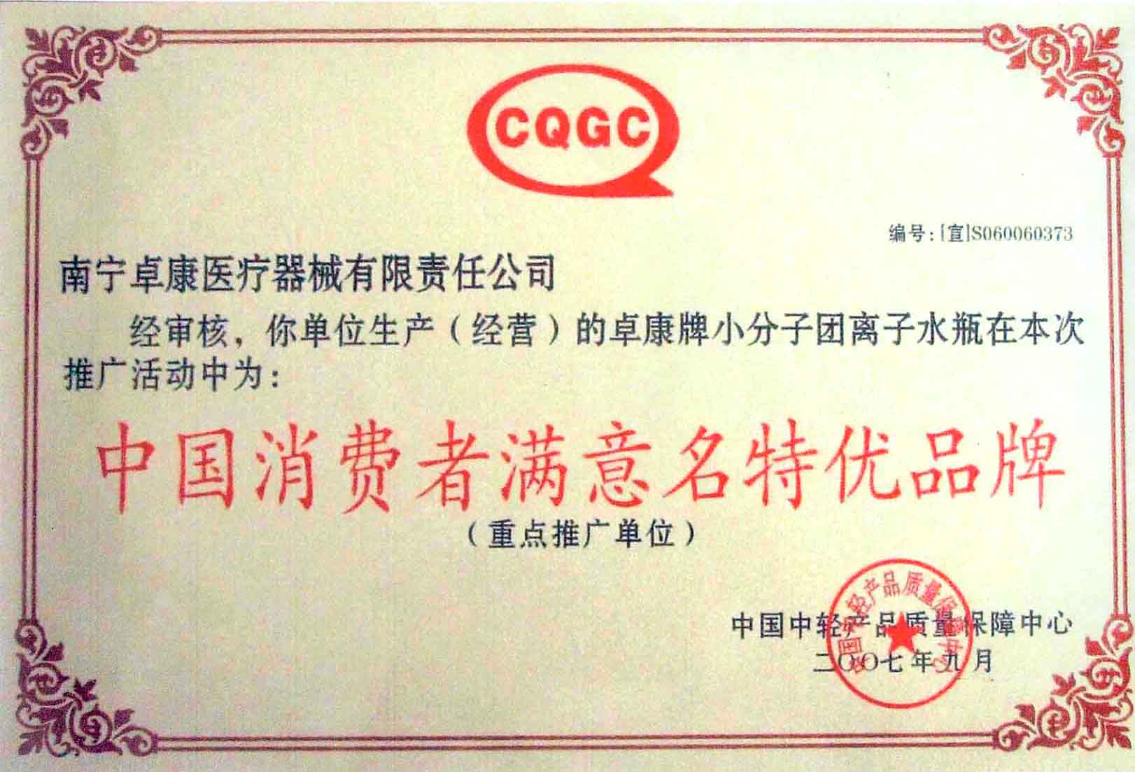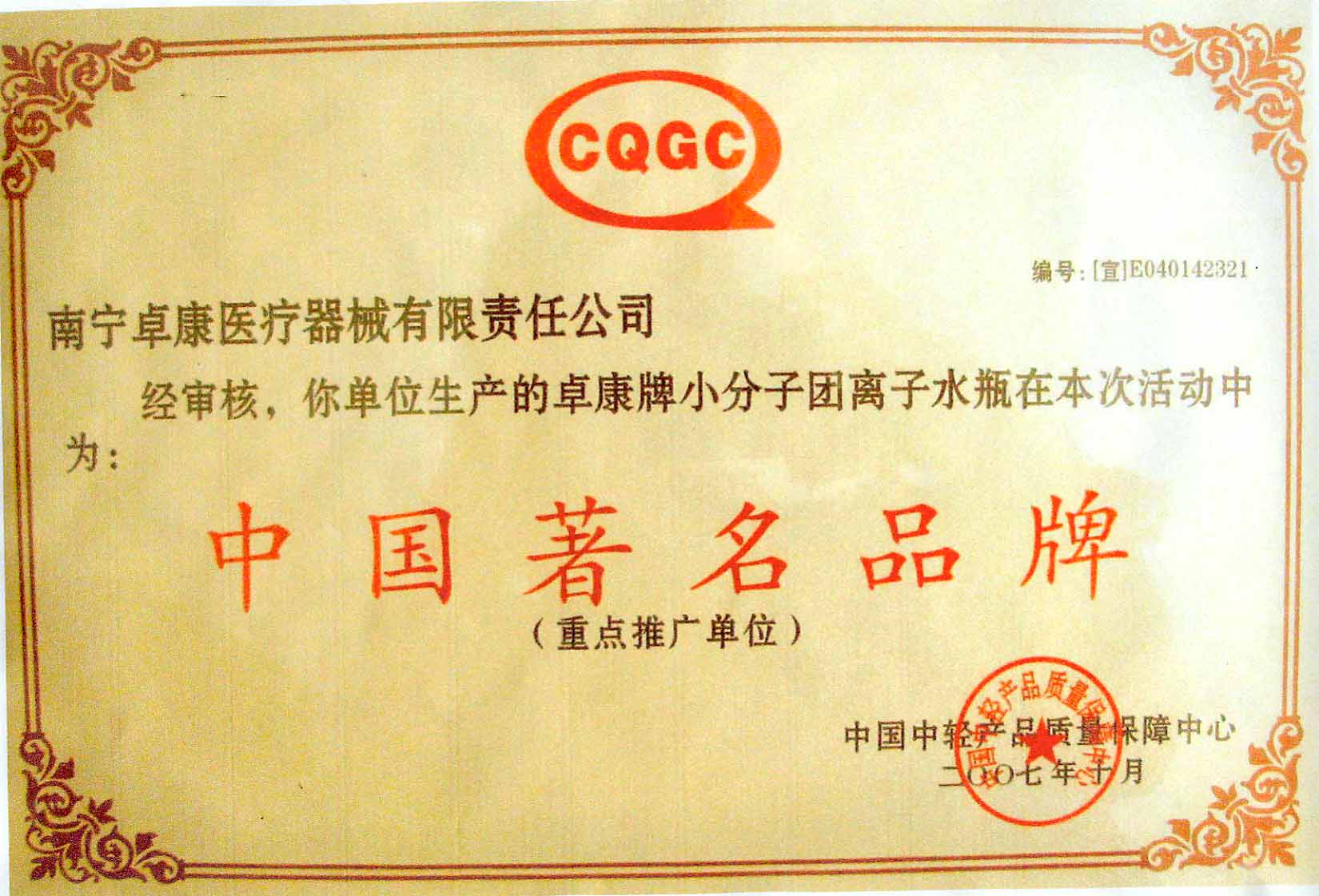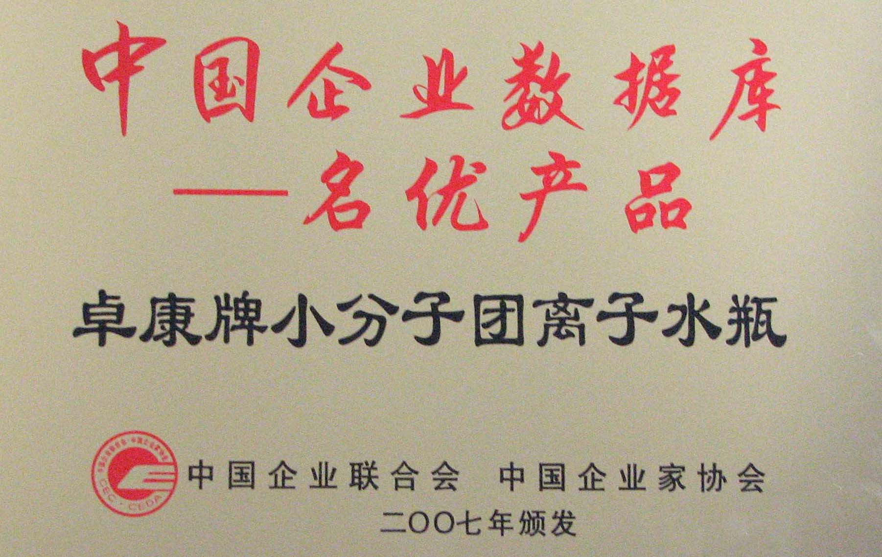 卓康牌離子水瓶榮獲中國企業名優(yōu)產品[點小圖見大圖]、中國著名品牌稱號[點小圖可見大圖]
