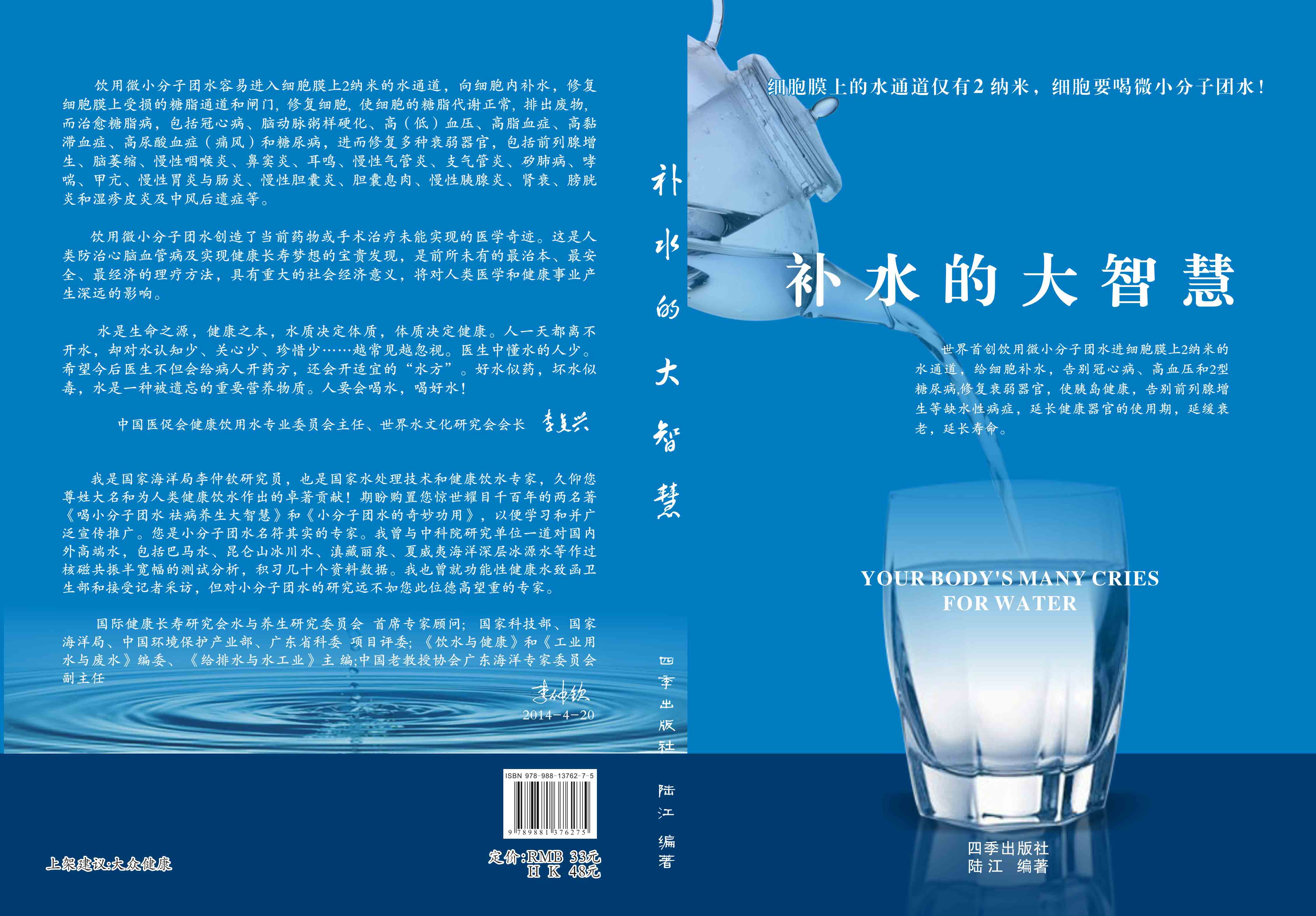 ----幾千年來,人們感到口渴才喝水,誤認為口渴是唯一的缺水信號,使喝水量偏少。很多人只知道補血補氣補腎補鈣補硒,而不知補水,逐漸使許多器官缺水,包括皮膚、動脈、氣管、膽囊、腸胃、骨關節(jié)、腎臟、前列腺和胰島缺水,以致患冠心病、高(低)血壓和糖尿病等缺水性病癥。美國F·巴特曼醫(yī)學博士寫有《水是最好的藥》一書很受歡迎,我國2007年譯成中文版,論述人體缺水引起許多病癥,他指導3000多患者喝水治愈了哮喘、胃炎和高血壓等病癥。而我是從2000年起,讓患者飲用微小分子團水,因為容易進細胞膜上2納米的水通道,治愈了許多缺水性的病。我跟蹤調查14年,發(fā)現凡是認真飲用和合理膳食,可治愈冠心病、高(低)血壓和2型糖尿病與衰弱器官并發(fā)癥及中風后遺癥。高血壓患者飲用2~5個月,癥狀消除,不再服藥,逐漸逆轉至消除動脈粥樣硬化,血壓正常穩(wěn)定,治愈了高血壓;冠心病人飲用3~5個月,消除心絞痛、房顫等癥狀,不再服藥,一年左右心電圖正常,經冠狀動脈造影掃描表明冠脈內無粥樣斑塊,真正治愈了冠心病;2型糖尿病人飲用3~10個月停藥,血糖尿糖正常,糖尿病痊愈。并且使前列腺增生、慢性咽喉炎、鼻竇炎、耳鳴、慢性氣管炎、支氣管炎、哮喘、矽肺病、慢性胃腸炎、膽囊炎、胰腺炎、腎衰、膀胱炎、風濕性關節(jié)炎、便秘、痔瘡和濕疹皮炎等不藥而愈,而無需終生服藥。飲用微小分子團水治愈的是長期吃藥治不好的病,彌補了幾千年來醫(yī)藥的欠缺,成為人類健康的寶貴資源。