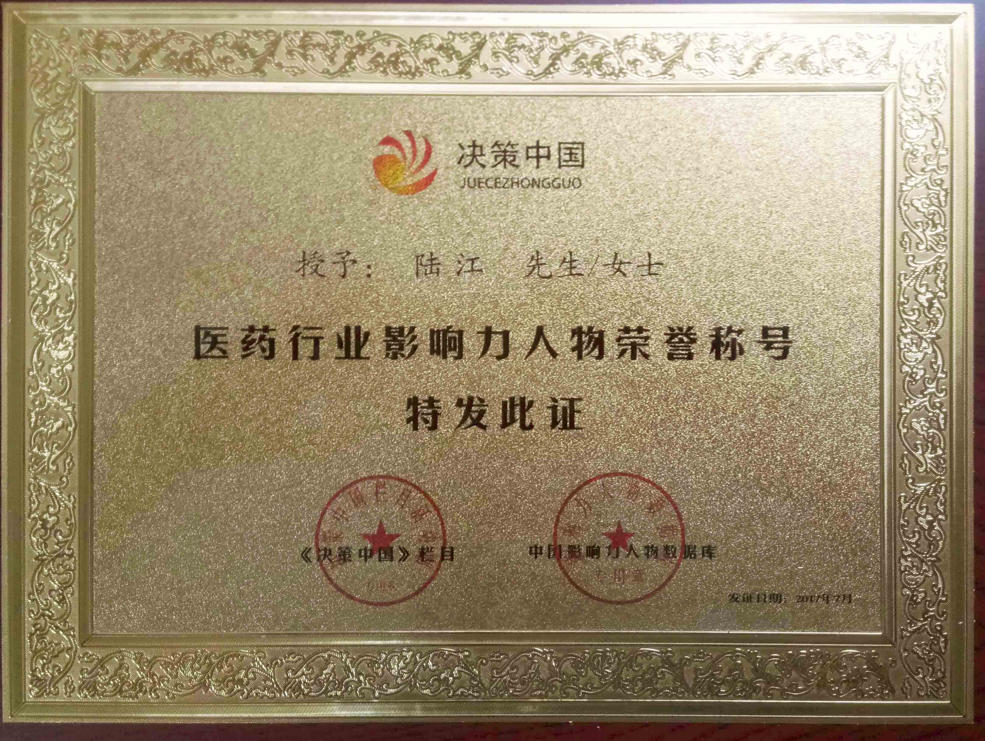 陸江榮獲引領行業發(fā)展杰出貢獻人物證書 --------卓康公司榮獲全國質量、服務、信譽AAA級品牌證書