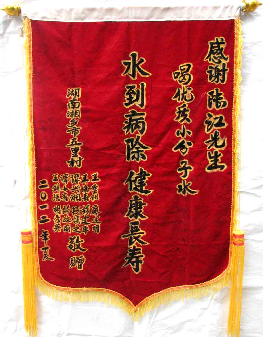 2015年潘志山主動寫一篇感想《我以親身實踐打破了冠心病、高血壓、糖尿病需終生服藥的神話》說:“堅持按發(fā)明人陸?江先生倡導的用‘已饑方食’的方法合理膳食,我的健康狀況越來越好:糖尿病造成的視力下降有了明顯的恢復,末梢神經炎導致的指端潰爛現在完全痊愈,痔瘡自從飲用微小分子團水半年后就再也沒有復發(fā)過,氣滯血瘀造成的嘴唇暗紫也漸漸變得紅潤,舌下靜脈黑紫消失,足背的動脈由以前的隱約感到跳動現在變得清晰有力。”[13]潘先生披露的訣竅,一是飲用微小分子團水給脫水細胞補水,二是“已饑方食”養(yǎng)生智慧,患者都能做到。